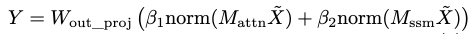 * SSM 헤드는 글로벌 문맥을 요약하면서 ‘Self’ 어텐션 점수에 더 집중 → 현재 토큰 중심으로 문맥을 정리