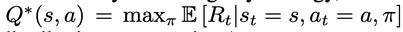 * 최적의 행동-가치 함수 Q*(s,a): 어떤 전략을 따를 때 시퀀스 를 관찰하고 행동 를 취한 후 도달할 수 있는 최대 기대 보상
