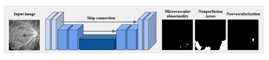 - Pixel-level lesions detection : IRMA(Intraretinal microvascular abnormality), NP(Nonperfusion areas), NV(Neovascularization)