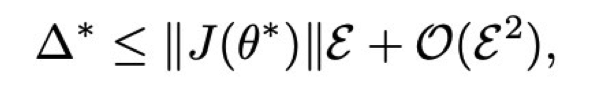 다음과 같다. 즉 perturbation으로 인한 행동 변화 델타가 파라미터 세타에 대한 야코비안 행렬과 perturbation의 곱 이하일 때, Reward가 유지된다는 뜻이다.
