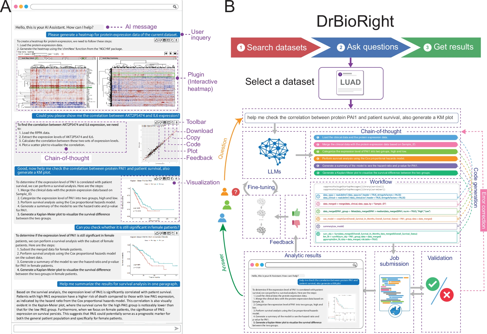 논문 출처 : Liu, W., Li, J., Tang, Y. et al. DrBioRight 2.0: an LLM-powered bioinformatics chatbot for large-scale cancer functional proteomics analysis. Nat Commun 16, 2256 (2025). https://doi.org/10.1038/s41467-025-57430-4