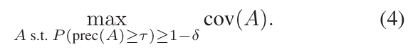 만약 현재의 anchor가 $P(prec(A)\ge\tau)\ge 1-\tau$를 충족한다면 이 anchor를 선택하며 종료