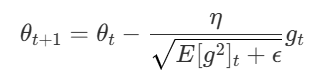 - 오래된 기울기의 영향력은 지수적으로 감소시키고, 최근의 기울기 정보를 더 크게 반영한다.