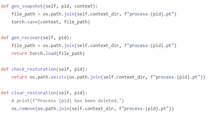 • AIOS는 이 문제를 해결하기 위해 context manager에서 Context Snapshot and Restoration 메커니즘을 제공한다.